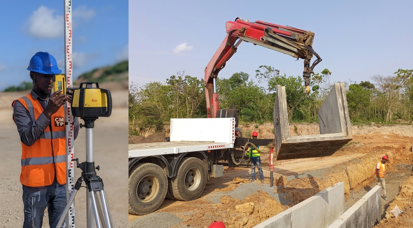 Rôle : Terrassement complet, exploitation et livraison de latérites et granulats pour les fondations et aménagements.