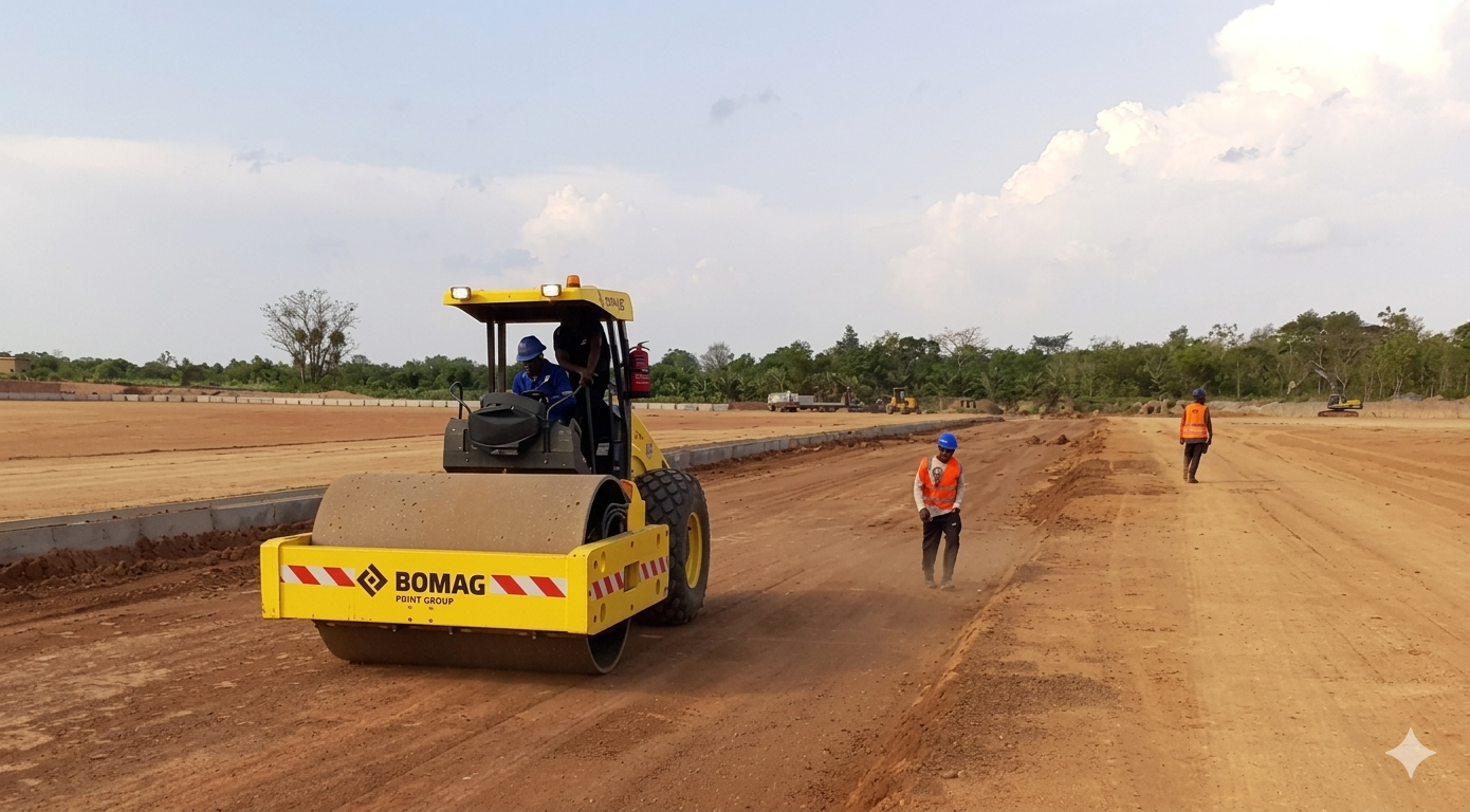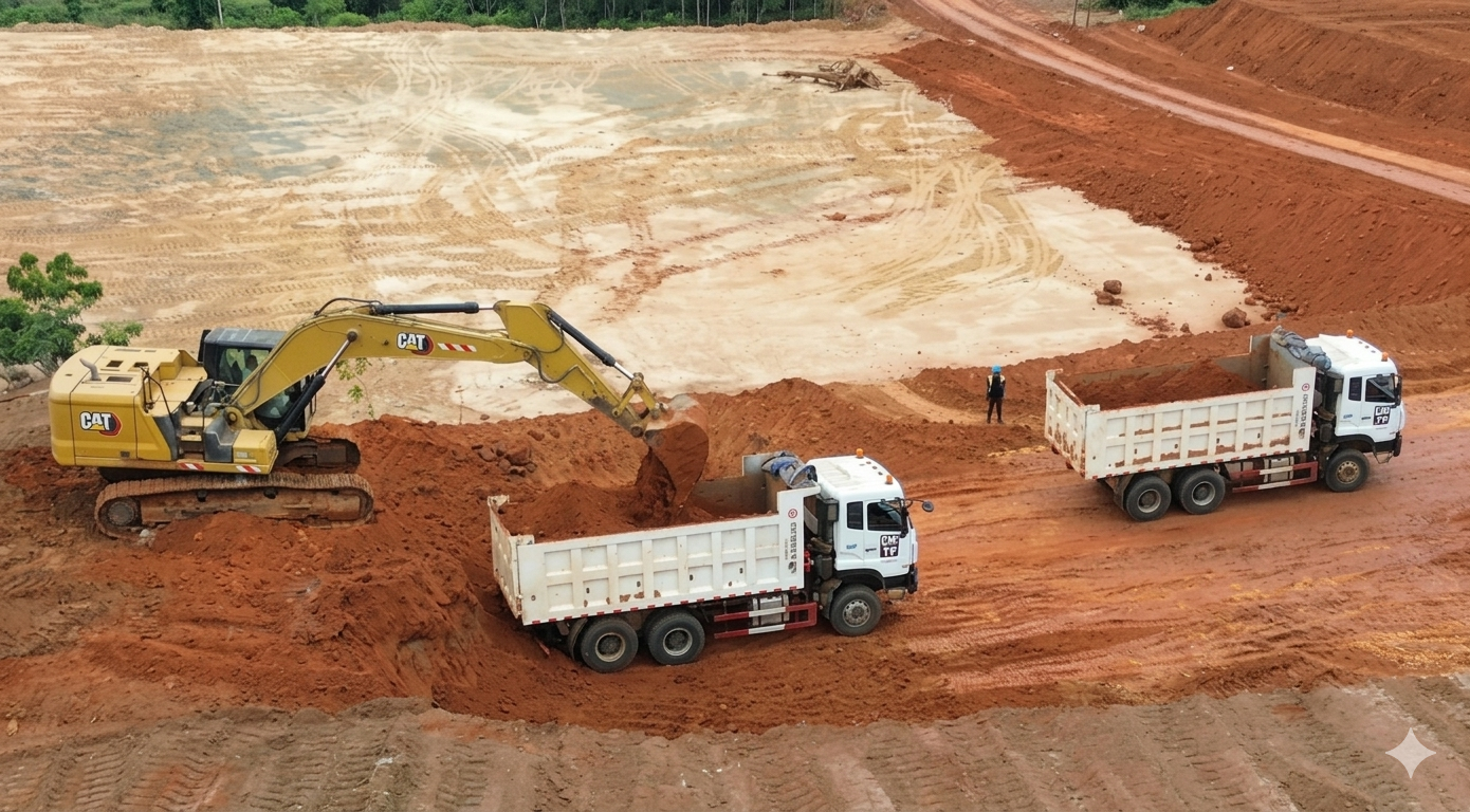 Rôle : Terrassement complet, exploitation et livraison de latérites et granulats pour les fondations et aménagements.
